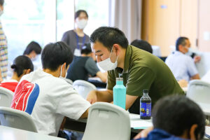 ボランティアスタッフは地域の大学生や大学院生、社会人であり、子どもたちに寄り添い、学力だけでなく、やり抜く力や周囲への思いやりなども身につけられるように、学習支援の運営を図ります。