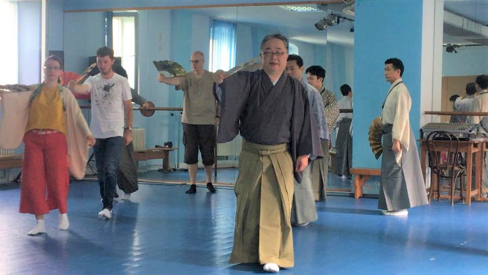 シビウ演劇学校で、演劇関係者の方に向けての能のワークショップをしました。能の説明と様々な演目のお仕舞の違いを説明し、能の謡の発生、楽器の説明と体験等、実際に体を使って行いました。
