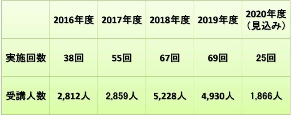 実施場所は、学校・企業・イベントと多岐に渡ります。