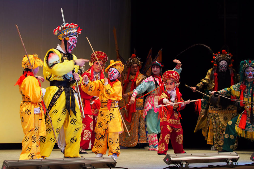 言葉は中国語ですが、歌、セリフ、舞踊、立ち回りなど、俳優の所作や様式で場面を説明し、物語を進めます。
