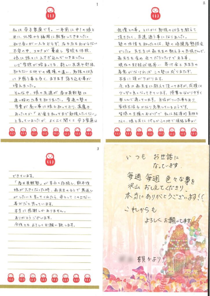春日英数塾はアパートの3部屋を借りて運営していますが、児童・生徒が増えたため、2021年度はもう1部屋追加契約したいと考えています。