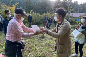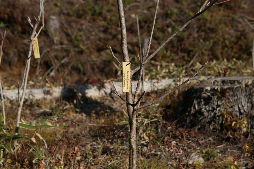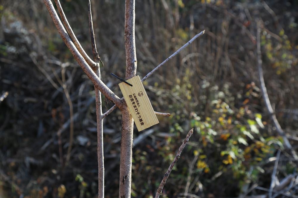 コロナ禍の影響で春から秋に植樹が順延されましたが、10月30日にお金をまわそう基金の助成金から試し植えのための苗木15本を支援しました。