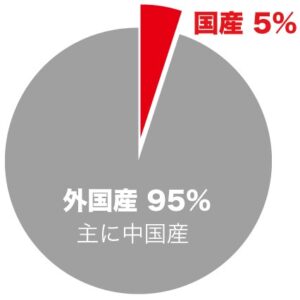 戦後、石油化学の発展、ライフスタイルの変化などから国産漆の需要は大幅に減少しました。さらに高価な国産漆から比較的安価な中国産漆への移行が進み、現在国内で使われる漆の95%が主に中国産です。