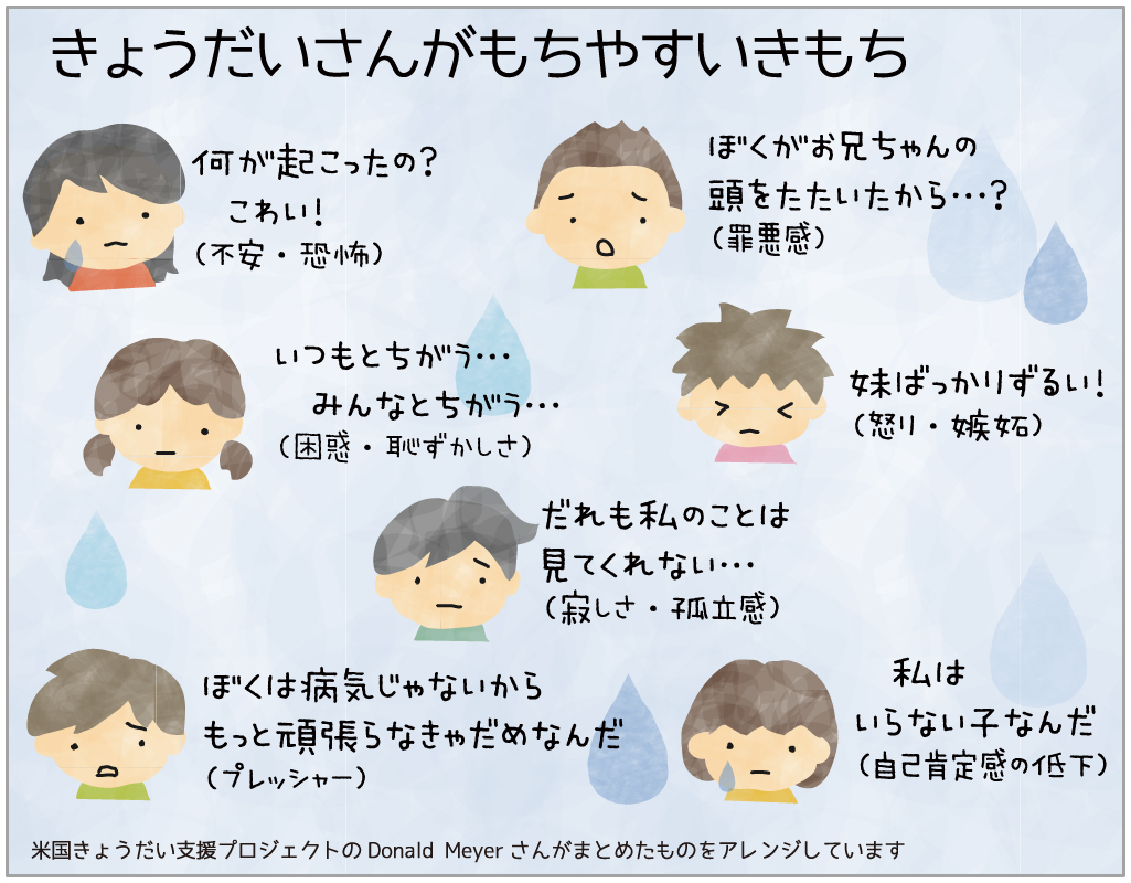 きょうだいたちは、家族が死んでしまうかもしれない不安や、大人の目が向かない寂しさの他、憤り、プレッシャー、自責感など、複雑な気持ちを抱えながら成長します。その影響で心身のバランスを崩したり、大人になってからの生きづらさにつながることもありますが、きょうだいへのサポートは数少なく、周囲の大人が支援の必要性に気づいても、相談したり、つなぐ先がなかったりするのが現状です。