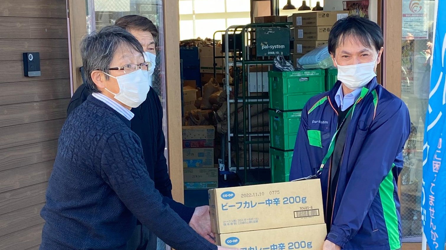 食支援の一環として、県立高校4校で「お米配布会」を開催し,高校生約600名に米や野菜,海苔,レトルトカレー等を配布しました。