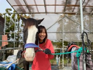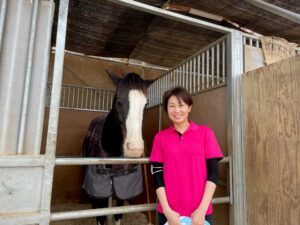 アヴニールファームさんに初めて伺ったのは、厩務員体験でした。とにかく馬に会いたくて、御世話がしてみたく伺いました。馬房掃除は思った以上に重労働で、『馬が好きでも、なかなか毎日できないですよね』と言うと、『でも、好きだから出来るんですよね』と笑って答えてくださった事が印象的でした。
