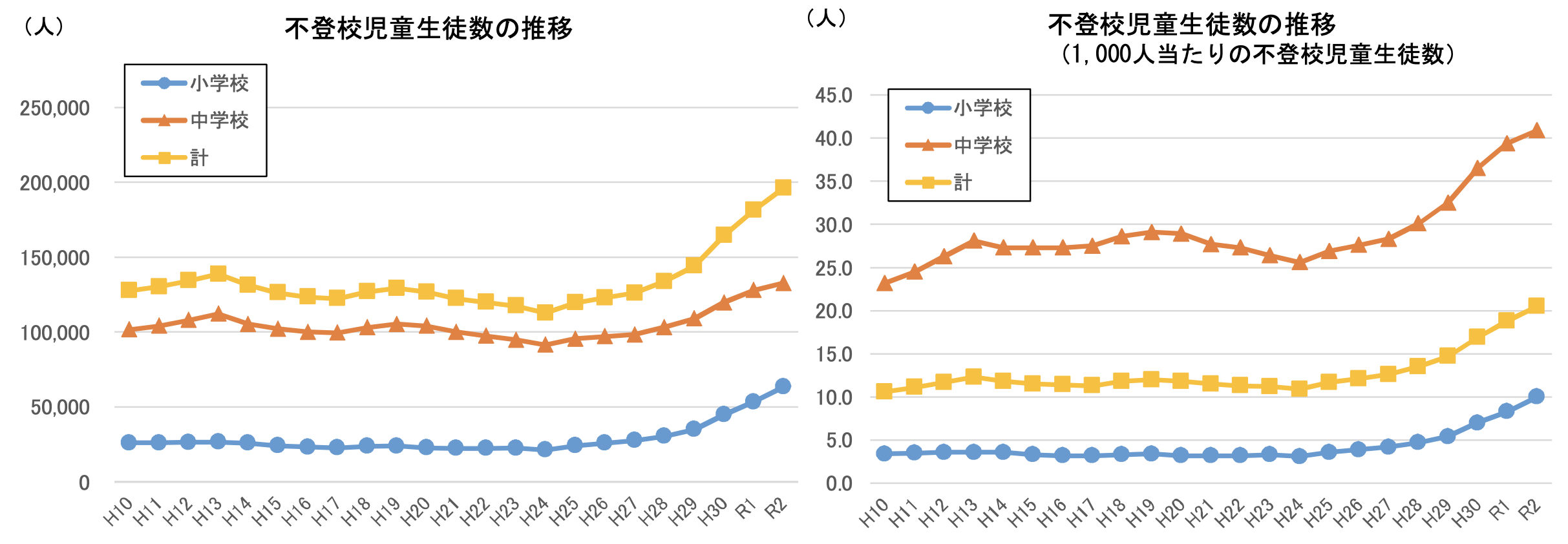 令和2年度児童生徒の問題行動・不登校等生徒指導上の諸課題に関する調査結果によると、2020年度の全国の小中学校における不登校児童生徒数は8年連続で増加し、19万6127人と過去最多となっています。