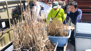 2023年は成木への成長環境を整えるためにこれらの苗木200本ほどを間引き、福島県会津若松市の新規植栽地に植え替えを行います。