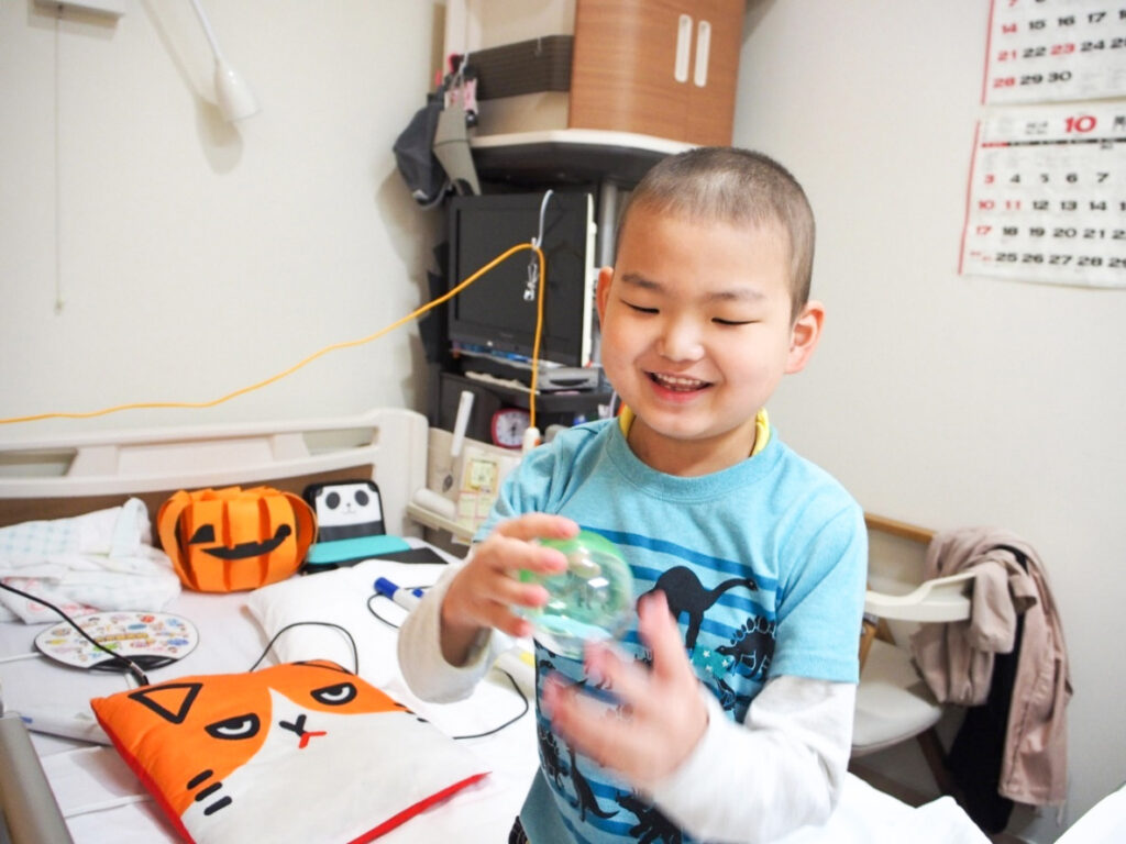入院中の子ども達は日々痛みを伴う治療やリハビリと向き合っています。また、検査結果によっては病室からプレイルームへ出ることさえ禁止される事もあります。