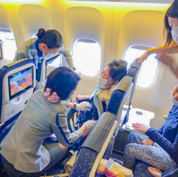 沖縄に行くには、飛行機に乗る必要があります。医療的ケア児や障がい児が飛行機に乗るためには、医療機器を運ぶための事前の申請や、当日持ち込むの機器の確認が必要になります。また、機内の通路を通ることのできる大きさの車いすに乗り換える必要もあります。Linoツアーでみんなで行くことで、一つ一つのハードルを乗り越えることができます。