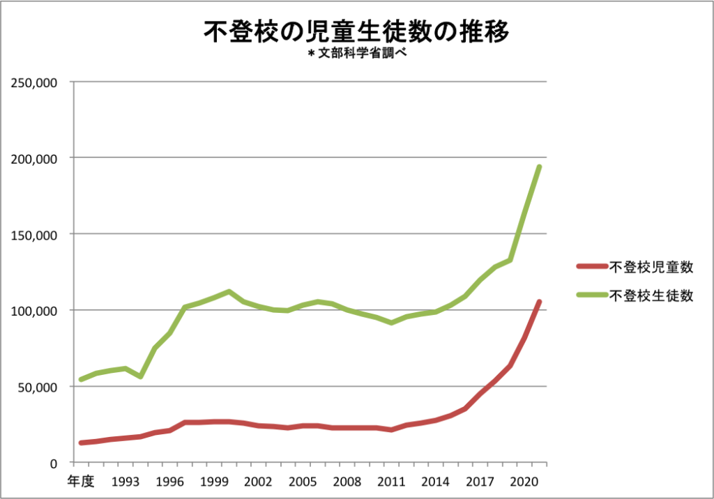 学校に居場所を見出しにくい子どもたちは毎年増え続けており、コロナ後の今も依然として不登校の問題は深刻化しています。