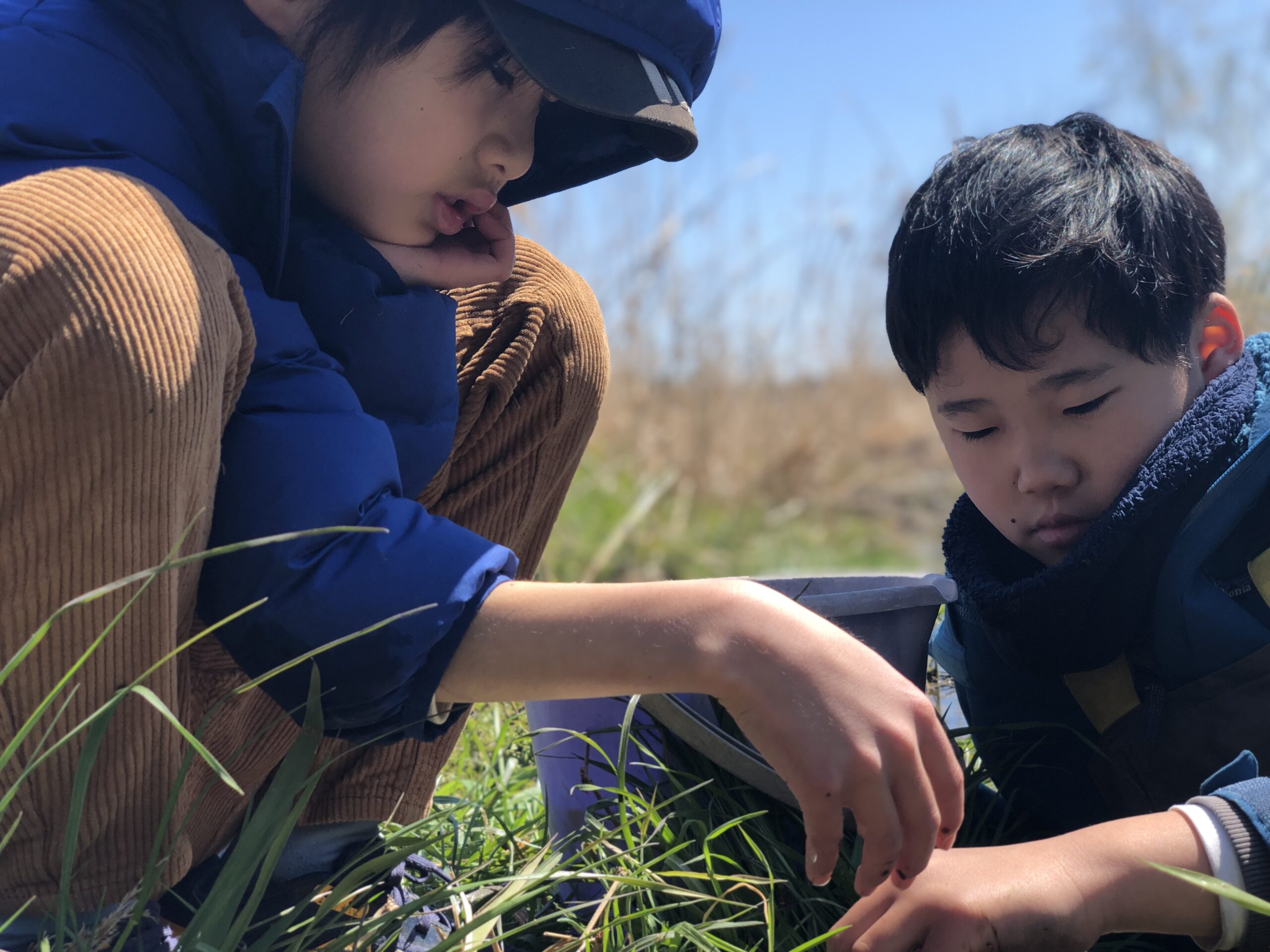 広々とした緑豊かな林の中に、私たちの学び舎は建っています。活動場所には手作りのハンモックやターザンロープ、畑もあります。めったにお目にかかれない貴重な植物が自生していたり、野鳥や昆虫をはじめ多様な生き物の姿を見ることもできます。近くに川遊びのスポットもあり、夏の暑い時期は最高の遊び場になっています。