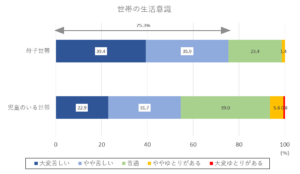 同調査では、生活の実感として母子家庭の4世帯に3世帯が「大変苦しい」、「やや苦しい」と感じています。昨今の物価高から、ますます生活状況が苦しくなっており,その一番の犠牲者が子どもたちです。