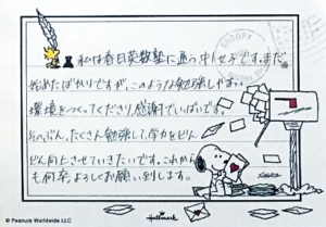 今年度も、塾には中学3年生の生徒がいます。彼らが進路を切り拓くために、どうぞ、お力添えくださいますようお願い申し上げます。