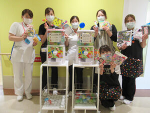 病棟や設置場所ごとに年齢層も欲しい景品も違う為、看護師さんや保育士さんにご協力いただき、状況に応じた景品が準備出来るように工夫しています。