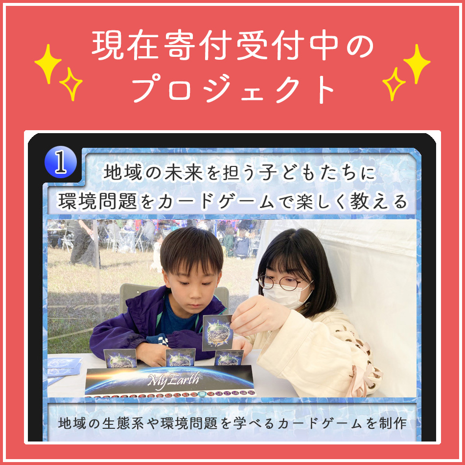皆様からのご寄付により、京都を代表する鴨川の生態系をカードゲーム化し、地域の子ども達の教材として環境教育に活用するプロジェクトを実施しています。