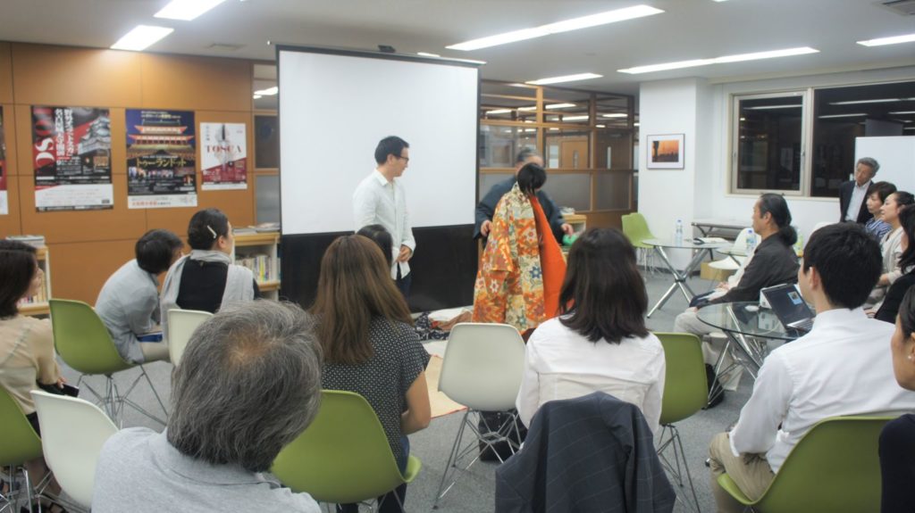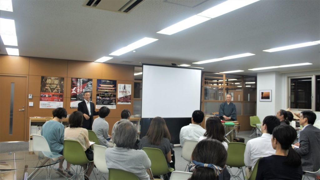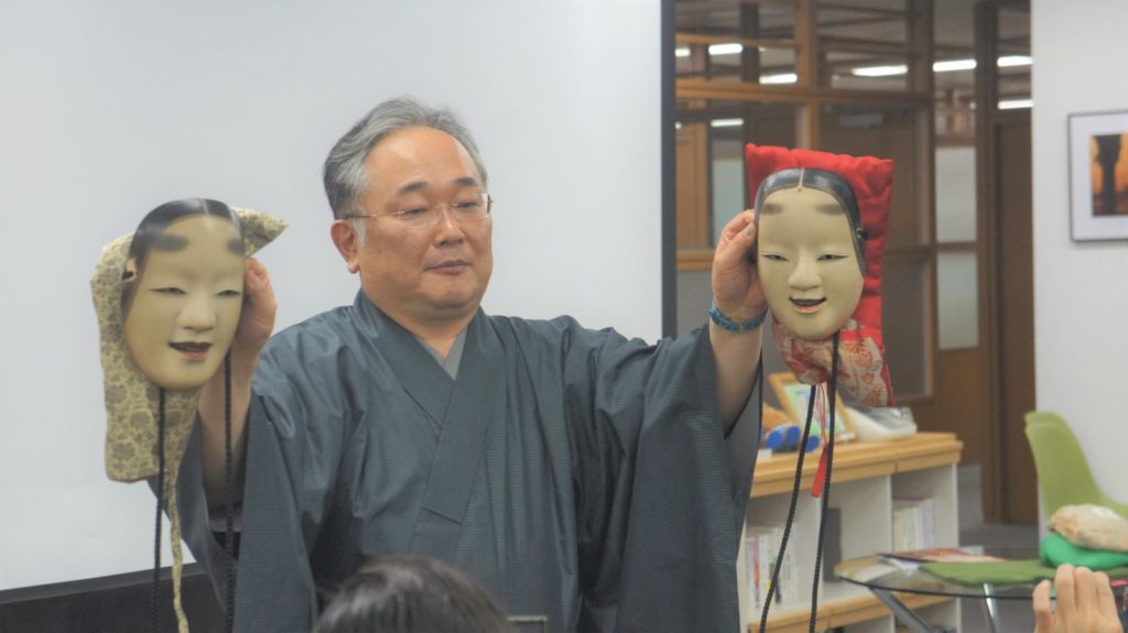 2018年5月29日、つなぐ~日本の伝統芸能「能」を世界へ~セミナー、体験会を開催いたしました。今回は、助成先団体の公益財団法人山本能楽堂代表理事 山本章弘さんを迎えて伝統芸能を守りつつ、その信念と情熱を世界へ発信する活動を知る『能(のう)セミナー』と能の謡(うたい)を一緒にうたったり、能面の表情を見比べ・能衣装を羽織る『能(のう)体験会』を行いました。