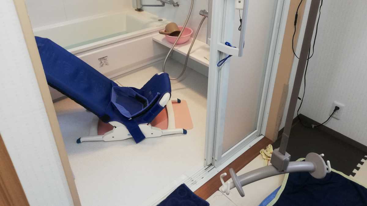 わいわいくらぶ油平の大きな特徴に入浴サービスがあります。入浴はお風呂上がりのストレッチの時間も含めると一人当たり20~30分かかります。浴室の後付け式のリフトを使ってスタッフ2名で行いますが、それでも中高生を入浴させるのはかなりの重労働だそうです。