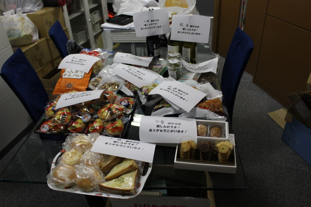 立食形式で、助成団体は各ブースを作成。寄付者の皆様からは多くの差し入れもいただき、それぞれに歓談を楽しみました。