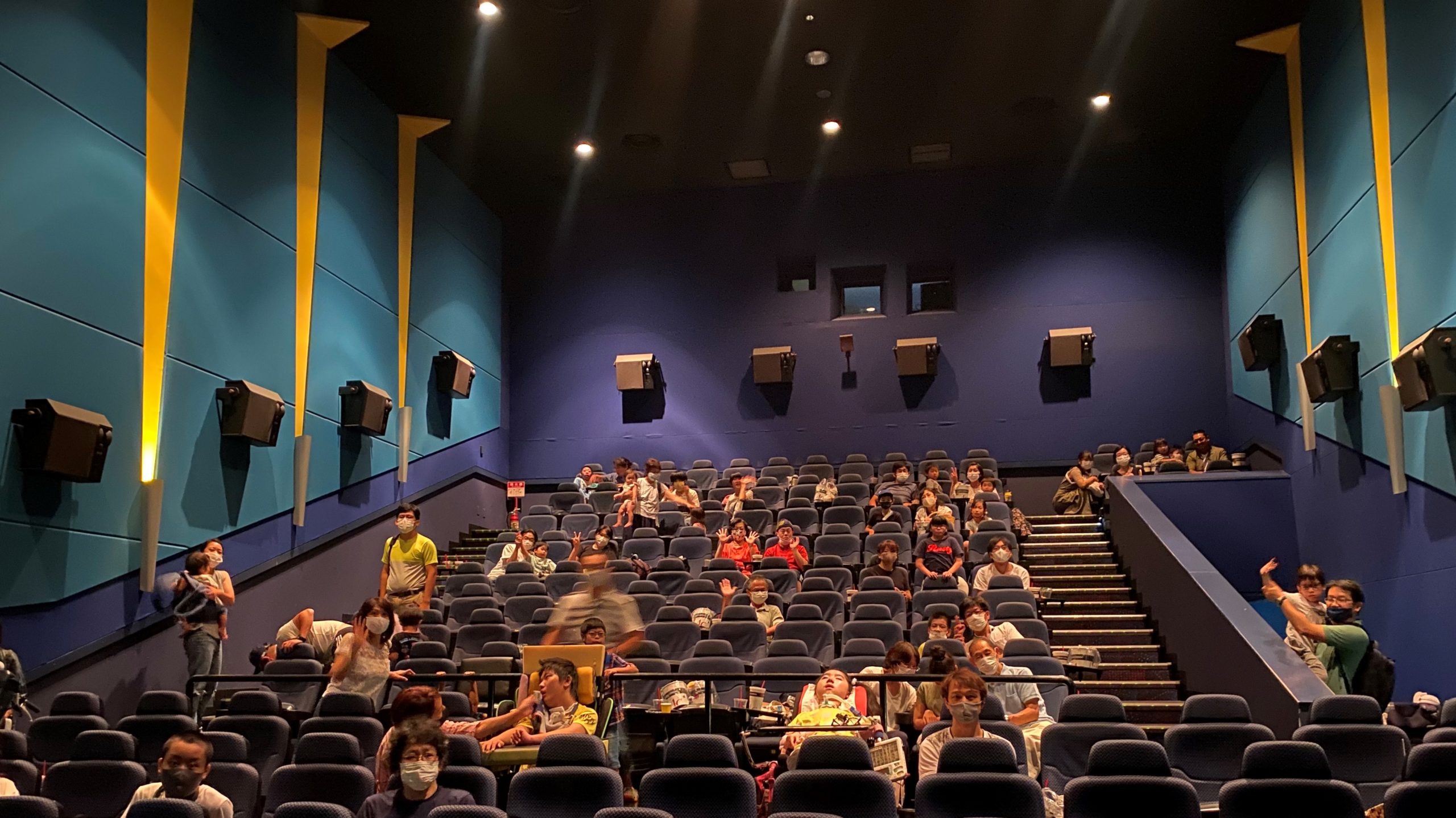 Linoの代表の杉本さんは、参加者の状況をみて問題なければ照明を全部落としたり、音のボリュームも調整したりと、イオンシネマのご担当の方と連携して参加者の皆さんが楽しい時間を過ごせるよう、細やかな気配りをされています。