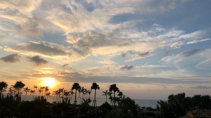 沖縄の海に沈む夕日。日常から離れて、気分転換になりますね。