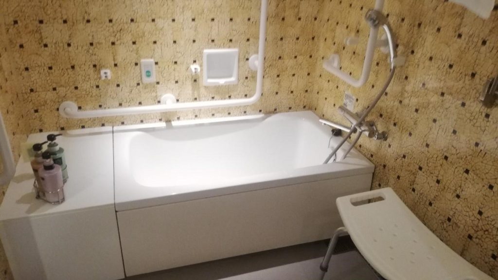 下の写真は、ユニバーサルルームのバスルームです。一般的な浴室と異なる点があるのですが、お分かりでしょうか?