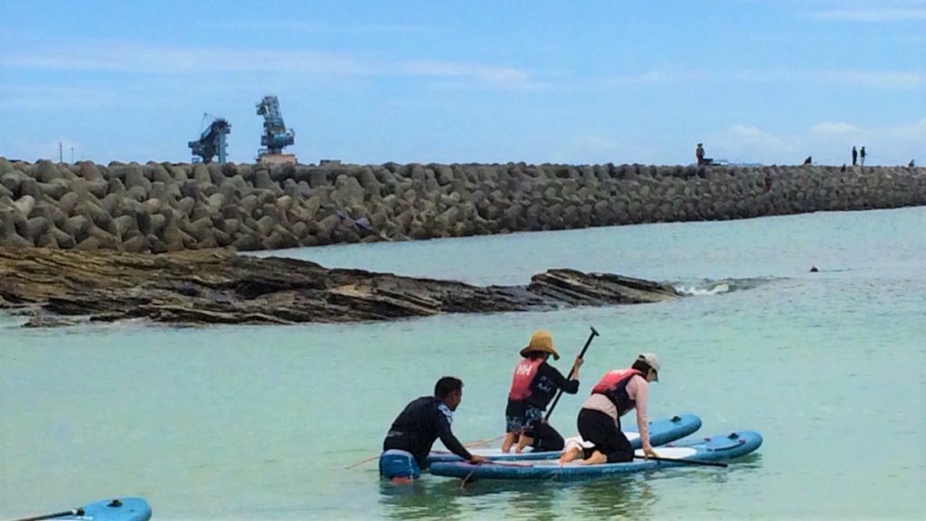 プログラムには、ビーチヨガ体験、SUP、シュノーケリング、ゴムボートなど様々なアクティビティがあり、お子さんも親御さんも体験することができます。どのご家族が何のアクティビティを行うかなどを事前に話し合いました。翌日は風が強い予報があり、お子さんたちの身体が冷えないためにタオルなどを沢山持っていく、ホテルのビーチが強風で使えない場合の動きなどの細かい情報共有を行い、打ち合わせを終了しました。