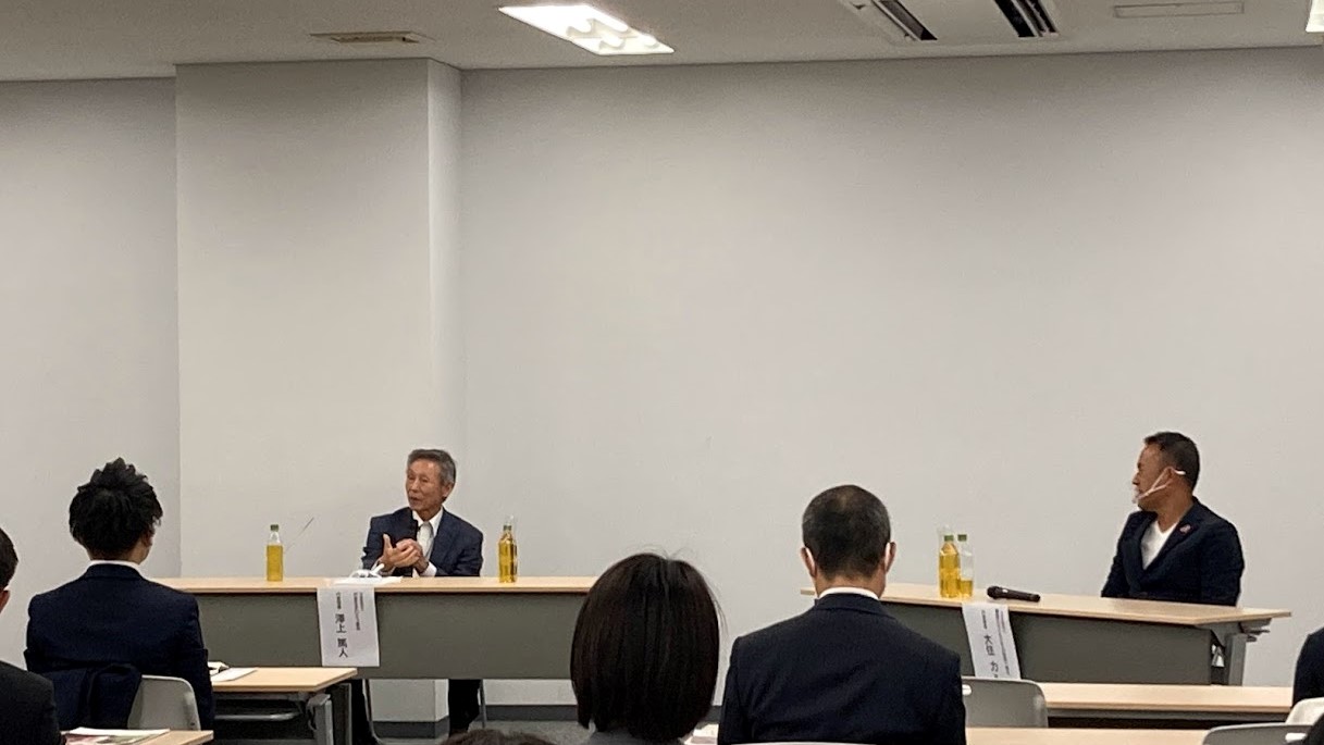 10月19日(火)、公益社団法人難病の子どもとその家族へ夢を の代表理事である大住力さんと、当財団代表理事の澤上篤人との対談会を行いました。久しぶりの対面セミナーには、天気が下り坂の寒い夜にも関わらず28名の方にご参加いただきました。