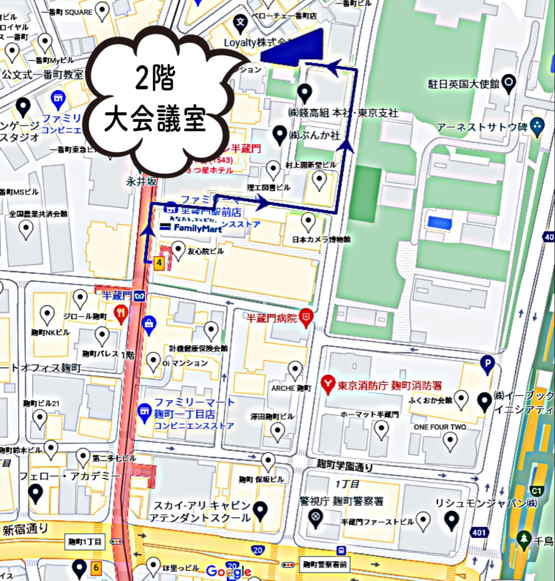 | さわかみ投信株式会社2F大会議室 〒102-0082 東京都千代田区一番町29番地2 東京メトロ半蔵門線 半蔵門駅下車 「4番出口」より徒歩3分 ![]() |