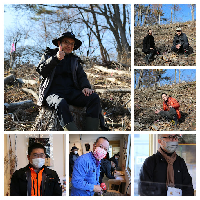 左上から時計回りに、ウルシネクスト理事長 柴田さん、ウルシネクスト漆芸プロデューサー 中根さん、ウルシネクスト理事 佐々木さん、ウルシネクスト理事 當麻さん、2回目の参加の森さん(佐々木さんや細越さんの高校の同窓生です!)、次世代漆協会代表理事の細越さん、いつも植樹作業を助けてくださる本多さん。