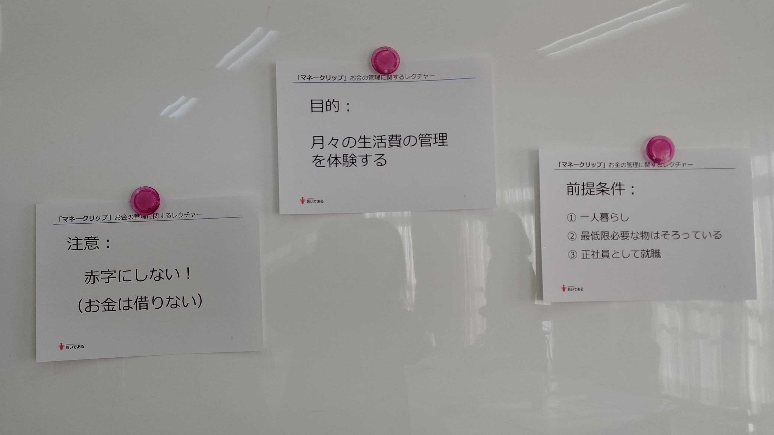 「公益財団法人あいである」(以下、あいであるといいます)では、オリジナルツール「マネークリップ」を開発し、生活費やお金の管理、コミュニケーションの仕方を、楽しくゲーム形式で体験できるレクチャーを、施設職員や施設で生活している子どもたちに提供することにしました。