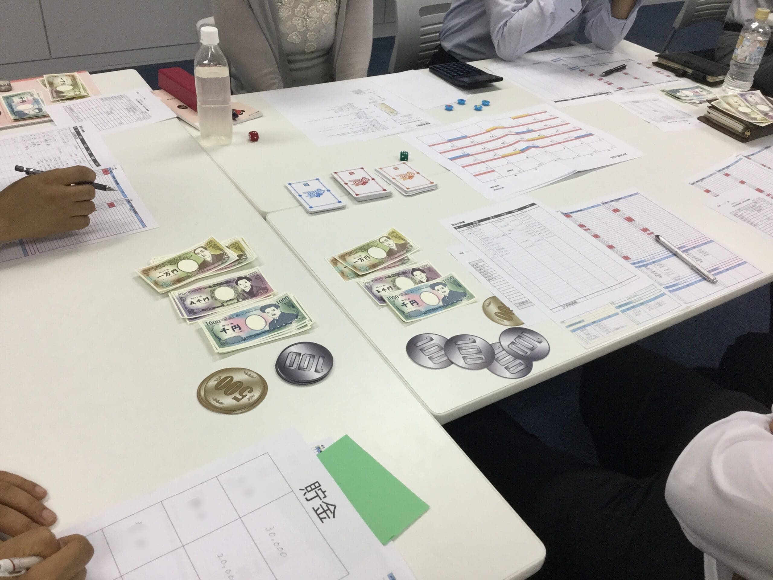 カードには自己投資のための勉強や、困っている立場の人への募金なども登場し、多様なお金の使い方を教えてくれます。アクシデントや出費のカードが連続して出る人もいて人生ゲーム的な要素もあります。「買います!」「買いません!」の一言で、こんなに盛り上がるゲームも珍しい。