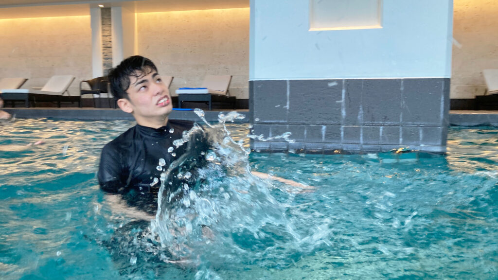 ホテルに着いて少しした後、プールでの遊泳体験が行われました。