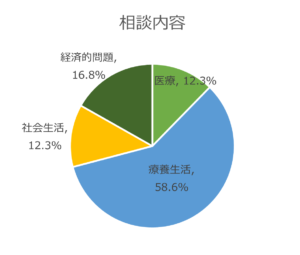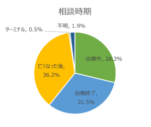 新型コロナウイルスの影響で、対面での相談は少なくなりましたが、電話やメールでの相談は数多く寄せられています。相談内容は、コロナ禍の療養生活や経済的な不安、亡くされたご家族のグリーフについてのご相談、高校生の教育や自立や就労についてなど、多岐にわたっています。