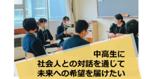 宮城県の中学校・高等学校に、様々な職業や経歴を持つ地元のボランティア市民講師との対話をベースとした、子どもたちに多様な生き方・あり方を伝えるキャリア教育プログラムを届けます。