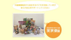 児童養護施設を退所して自活している子どもに、『あなたを見守っています』 というメッセージとともに、インスタント食品やお菓子などが入った「実家便」を、年に2回届けます。