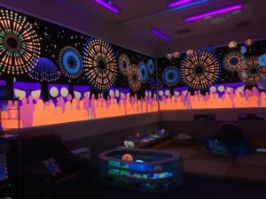 ※私たちが提供しているのは、「ブラックライトルーム」と呼ばれる環境を作り上げて行う体験です。スヌーズレンは、他にも「ホワイトルーム」と呼ばれる環境でも行われています。