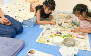 「わいわいくらぶ」の中では、おやつや絵本の読み聞かせ、体操など、子どもたちができるだけ変わらない日常を過ごせるよう心掛けました。安全に配慮しながら、施設内での春休みのお花見と夏休みの夏祭りにも参加することができました。