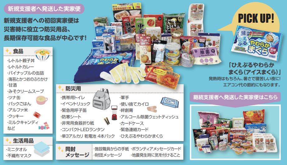 実際に2018年9月に発生した北海道胆振東部地震で停電が続いた際、「実家便」を退所した子どもに送っていたある北海道の児童養護施設には、子ども達から「『実家便』を思い出して役に立った。特に、ランタンや非常食などすぐに使えて助かった。」と多くの声が寄せられたそうです。