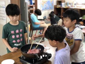 月に1回の「ランチチャレンジ」の日だけは、高学年の子たちがリーダーシップをとって、食材の買い出しから下準備、調理、洗い物まで、子どもたちだけで役割分担をしながら、昼食を作っています。