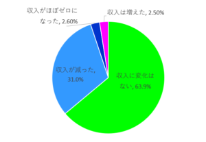 NPO法人登校拒否・不登校を考える全国ネットワークが不登校の子どもを持つ親を対象に行ったアンケート調査によると、子どもの不登校をきっかけとして、25.6%が「早退・遅刻が増えた」など、働き方に変化が生じていることが分かりました。3分の1の親が不登校をきっかけに収入が「減った」と回答しており、「収入がほぼゼロになった」との回答も2.6%ありました。子どもが低学年の場合、一人で家にいさせることが困難なため、親は一緒に家にいる必要があります。ひとり親家庭の場合は、働くことができなくなり、収入が無くなるという事態に陥ることもあるのです。