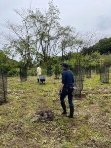 神奈川県秦野市用に導入した草刈り機の試運転実施。鹿対策用のトリカルネット納入。