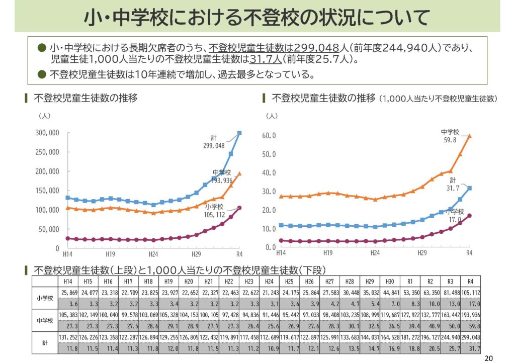文科省によると、2022年度の小中学校の不登校児童の数は前年から22.1%も増加し、過去最多となりました。