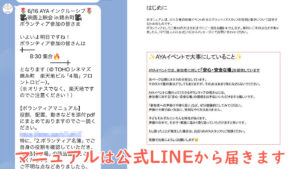 上映会の前日までに、ボランティアには仕事の分担のほか、AYAが大切にしていることやご家族からのよくある質問まで記載されたわかりやすいマニュアルが配布されます。