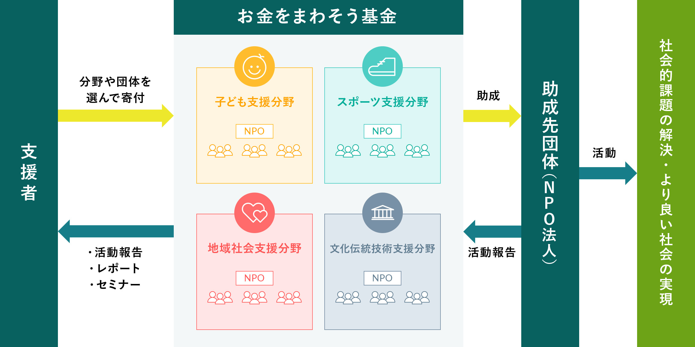 お金をまわそう基金は、社会課題の解決に取り組むNPO法人と支援者を繋ぐために、寄付のプラットフォームの運営をしています。