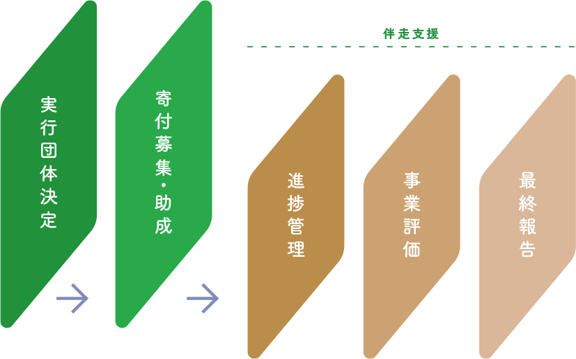 本プロジェクトは、助成(実行団体への資金の提供)のほかに、 プログラムオフィサーによる事業の伴走支援も行っております。