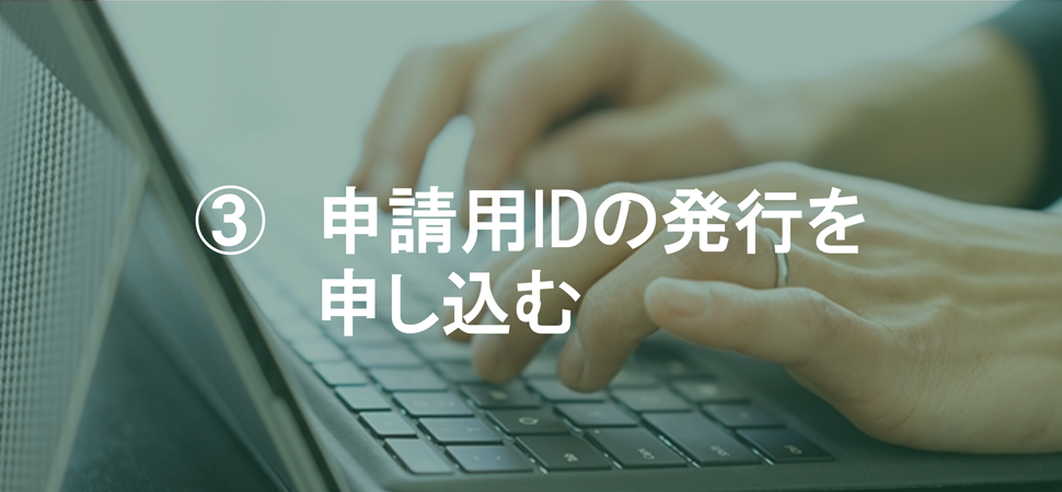 以下の「③申請用IDの発行を申し込む」から申請システムのIDを申請します。